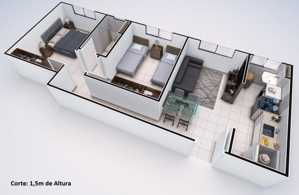 - Dormitórios: 2 Banheiros: 1 Garagens: 1 Área: 60,00m²