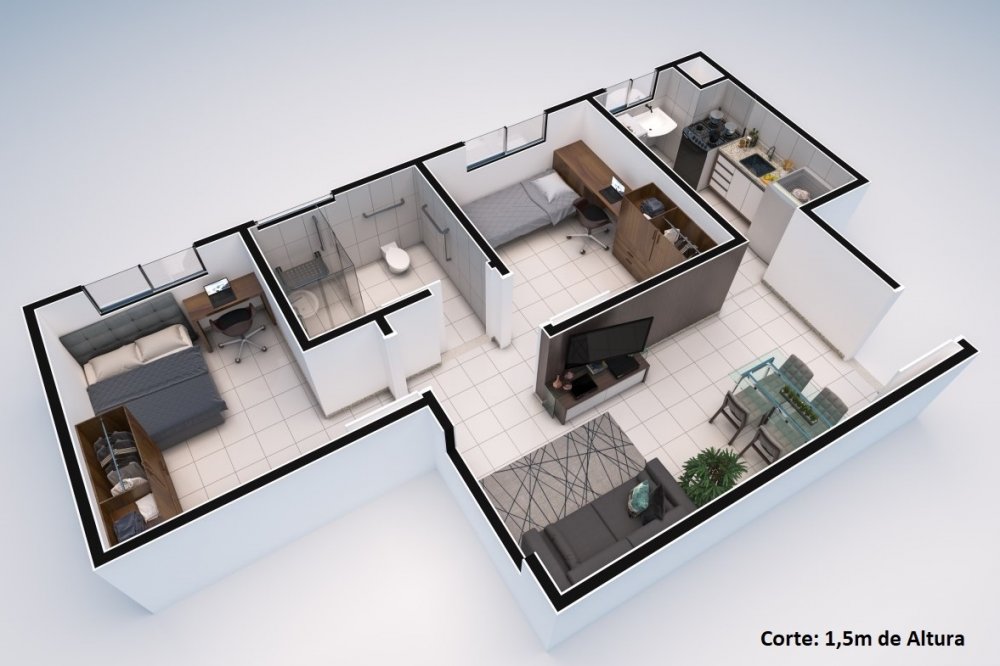 - Dormitórios: 2 Banheiros: 1 Garagens: 1 Área: 43m²