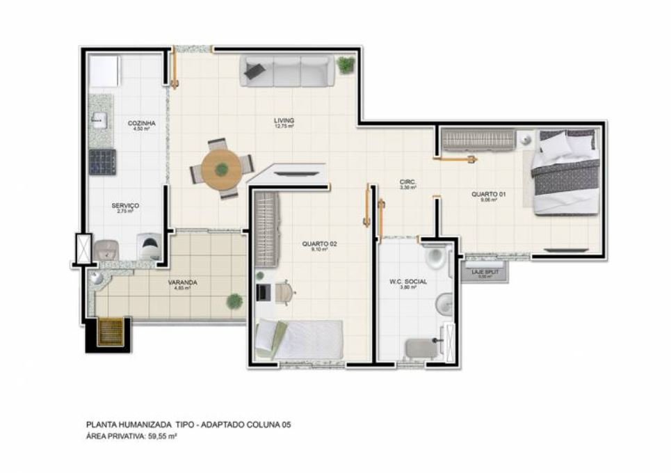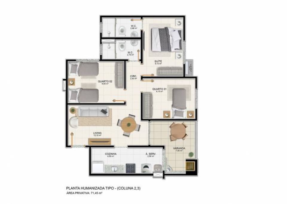 Área Total: 71,45 m²Área Construída: 71,45 m²